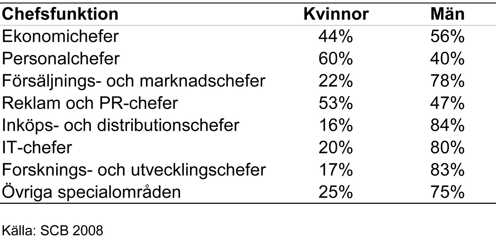 Man behöver inte vara något statistiskt geni för att inse att de flesta inköpsavdelningar är manligt dominerade. Enligt SCB:s yrkesregister så är två tredjedelar av alla inköpare män, hälften så många, dvs en tredjedel är kvinnor. Offentlig sektor verkar dock locka till sig fler kvinnor, medan privat sektor är ännu mer mansdominerad. Vidare visar statistiken för olika chefskategorier följande fördelningar:
