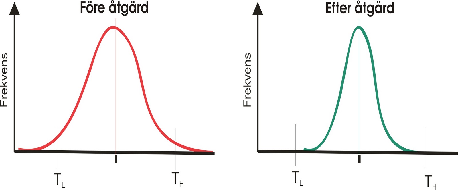 Leveransbevakaren måste även mäta trenden hos olika leverantörer för att se om arbetet ger resultat. Populärt är då så kallad kapabilitetsmätning, dvs vi loggar frekvensen av rättidighet, förtidighet och försening: