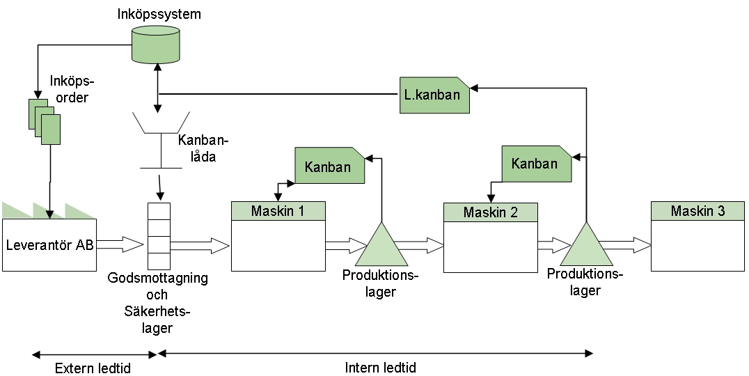 Kanban uppfanns i Japan på 50-talet och finns numera i de flesta industrier. Kanbanet är helt enkelt en informationsbärare som skickar behovsinformation uppströms en tillverkningskedja. Man brukar säga att kanbanet skapar ett dragande flöde, vilket har en starkt effektiviserande verkan.