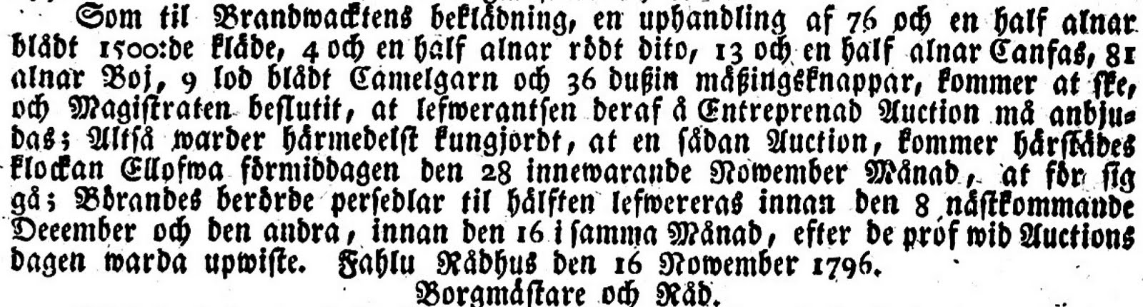 Sannolikt är den äldsta lagen den förordning som instiftades den 20 december 1825 och kallas Kongliga reglementet om kronoauktioner. Denna lag omfattar både köp och försäljning, där två kapitel är starkt fokuserade på upphandling. Intressant är att man delar upp upphandlingen i köp av varor och entreprenader. En uppdelning som följt med länge och som vi än idag exempelvis kan se i olika tröskelvärden. Förordningen har en form av likabehandlingsprincip, där den säger att anbud från landsorten ska behandlas lika med de från Stockholm; ett begrepp som sedan utvecklats under seklerna. Vidare kan man läsa att upphandlingar ska annonseras minst tre gånger och senast sex veckor före auktionen. Därav finns det mycket annonser att läsa från denna tid. Exempelvis denna annons i Post- och inrikes tidningar 1845: